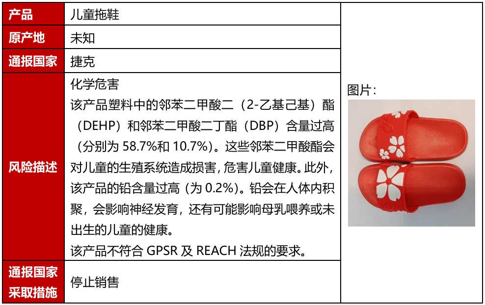 2025年11月,欧盟、美国、加拿大和澳洲共发生6例鞋类召回案例。该召回发生在欧盟,且是因为存在化学或环境危害被召回。